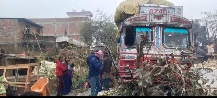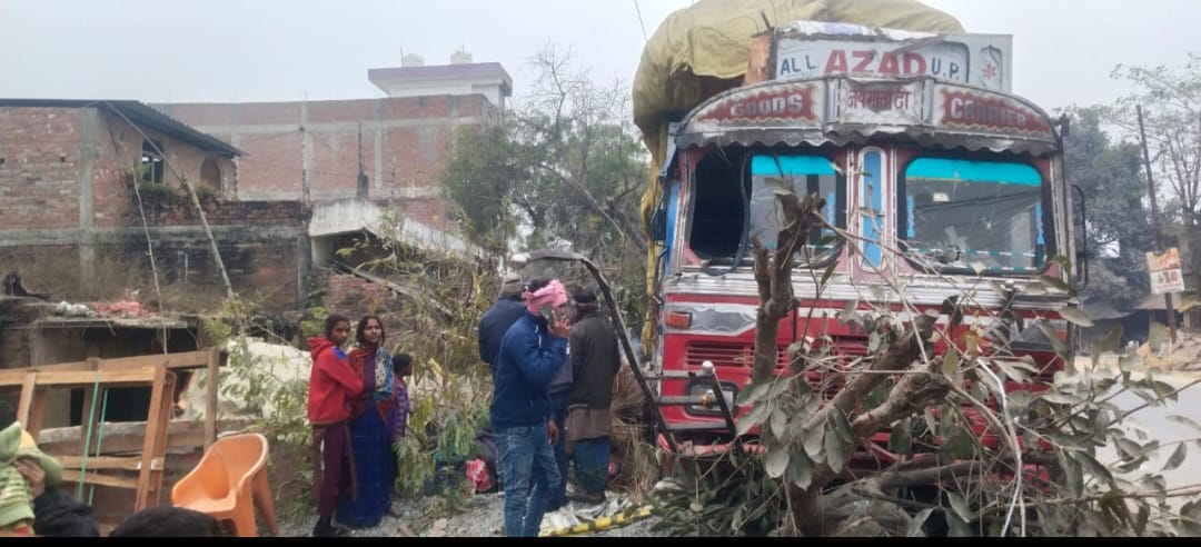 अनियंत्रित होकर ट्रक सड़क किनारे झोपड़ी में घुसा, सो रहे दम्पति गंभीर