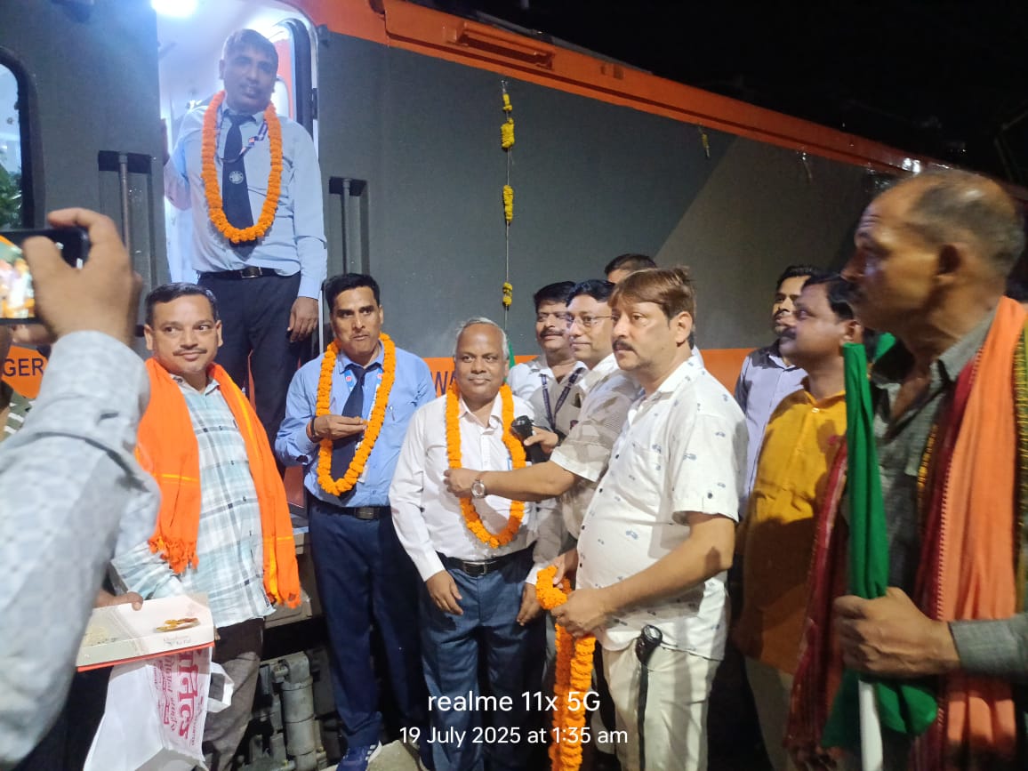 अमृत भारत एक्सप्रेस ट्रेन का स्टेशन पर हुआ स्वागत