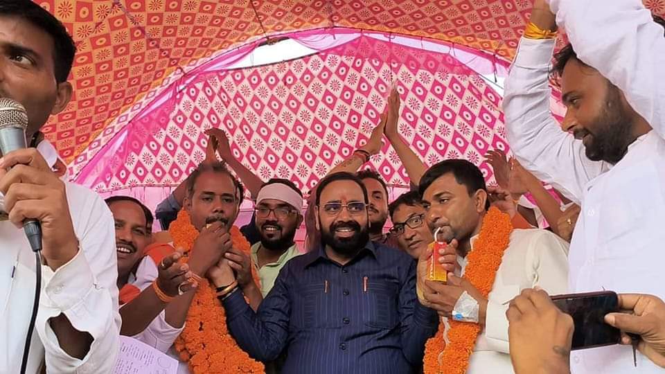 # पूर्व विधायक दिनेश चौधरी ने जूस पिलाकर तोड़वाया अनशन