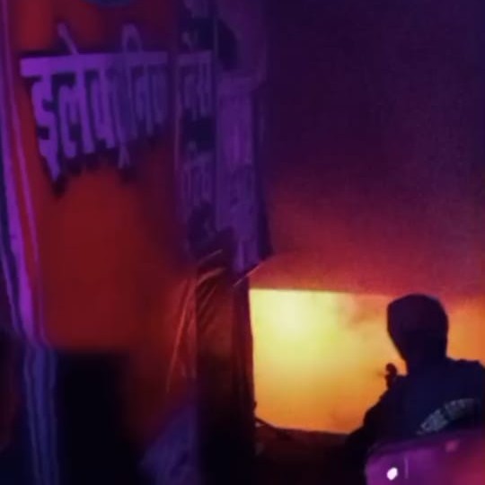 आयुष इलेक्ट्रॉनिक में भीषण आग, 12 लाख का नुकसान
