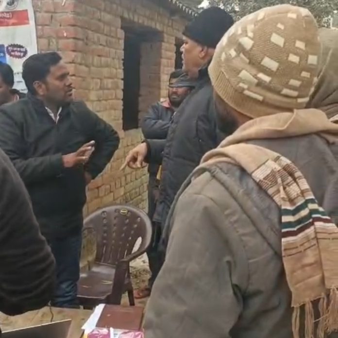 उसी समय एक व्यक्ति 5 अज्ञात लोगों के साथ आया और बिना अपनी समस्या को पूर्ण रूप से अवगत कराए मेरे साथ उलझने लगा।मेरे साथ गाली गलौज करते हुए जान से मारने की धमकी देने लगा। सरकारी उपकरणों को क्षति पहुंचाई और सरकारी कार्य में बाधा डालते हुए सरकार के मंशानुरूप चल रही विद्युत शिविर को बंद करवा दिया।