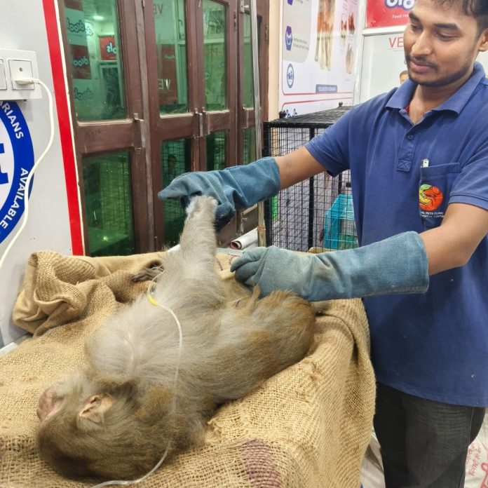 करेंट की चपेट में आए बंदर का हुआ सफल उपचार