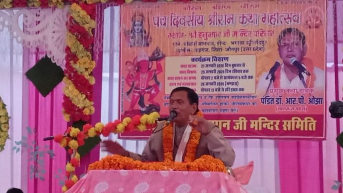 क्षेत्र के चौबाहा गांव स्थित  हनुमान मन्दिर परिसर में श्री हनुमान जी मन्दिर समिति की ओर से आयोजित पंच दिवसीय श्रीराम कथा के दूसरे दिन गुरुवार को भगवान राम जन्म की कथावाचन करते हुए कथा वाचक डॉ. आरपी ओझा ने राम नाम की महिमा का गुणगान किया।उन्होंने कहा कि कलियुग में केवल भगवान के नाम का स्मरण ही एकमात्र सहारा है। राम नाम के निरंतर जाप से मनुष्य जन्म-मरण के चक्र से पार होकर मोक्ष प्राप्त कर सकता है।