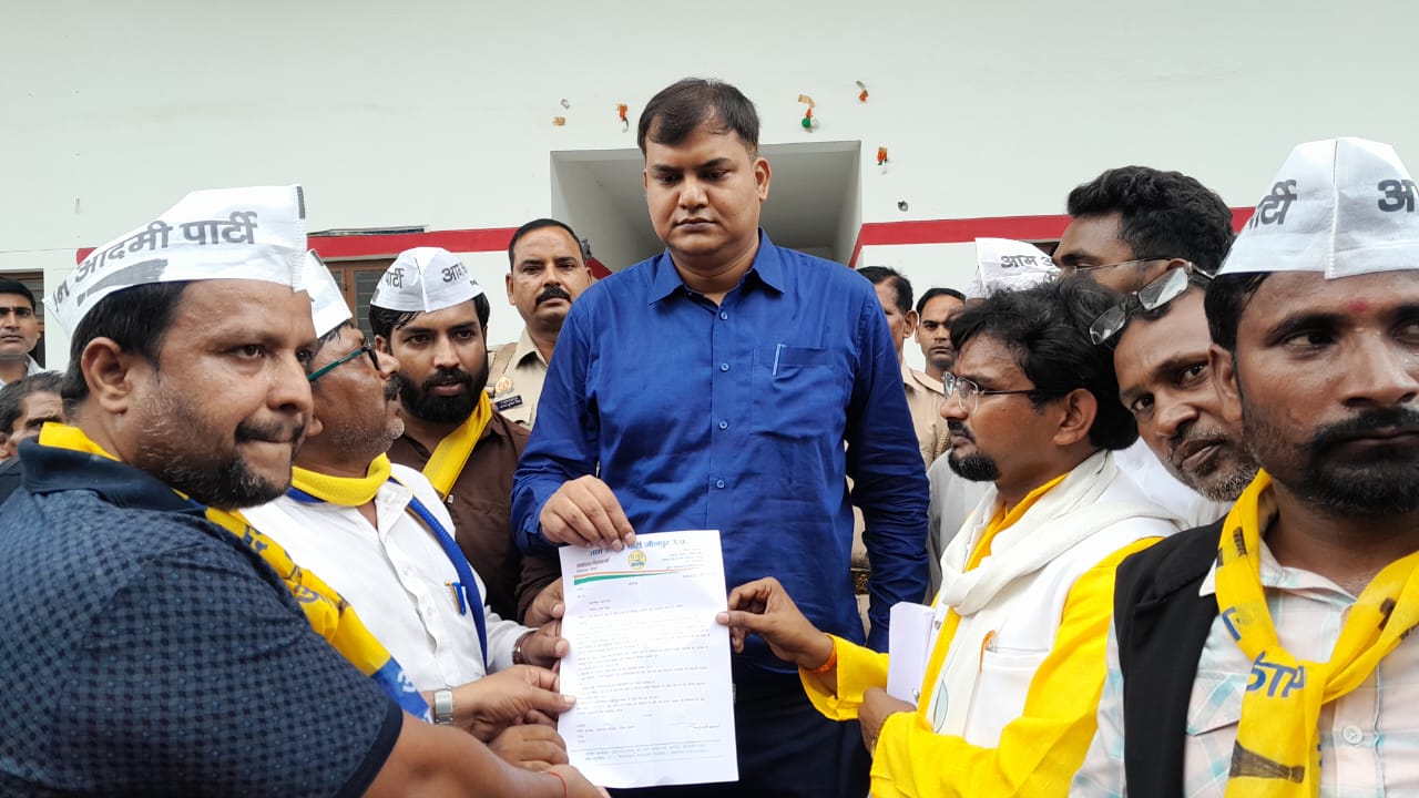 खाद संकट पर आम आदमी पार्टी का विरोध प्रदर्शन, तहसीलदार को सौंपा ज्ञापन