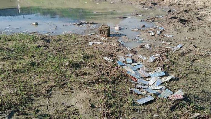 वाराणसी गाजीपुर हाई-वे पर गोपालपुर के पास पुलिया के नीचे सैकड़ों पैकेट दवाईयां पानी में फेंकी मिलीं है। इशोपुर के करीब ईंट भट्ठे के पास हाइवे के नीचे हनुमान मंदिर के पास पुलिया के नीचे पानी में सैकड़ों पैकेट बिखरे दवाइयां देख लोग अचंभित रह गये।