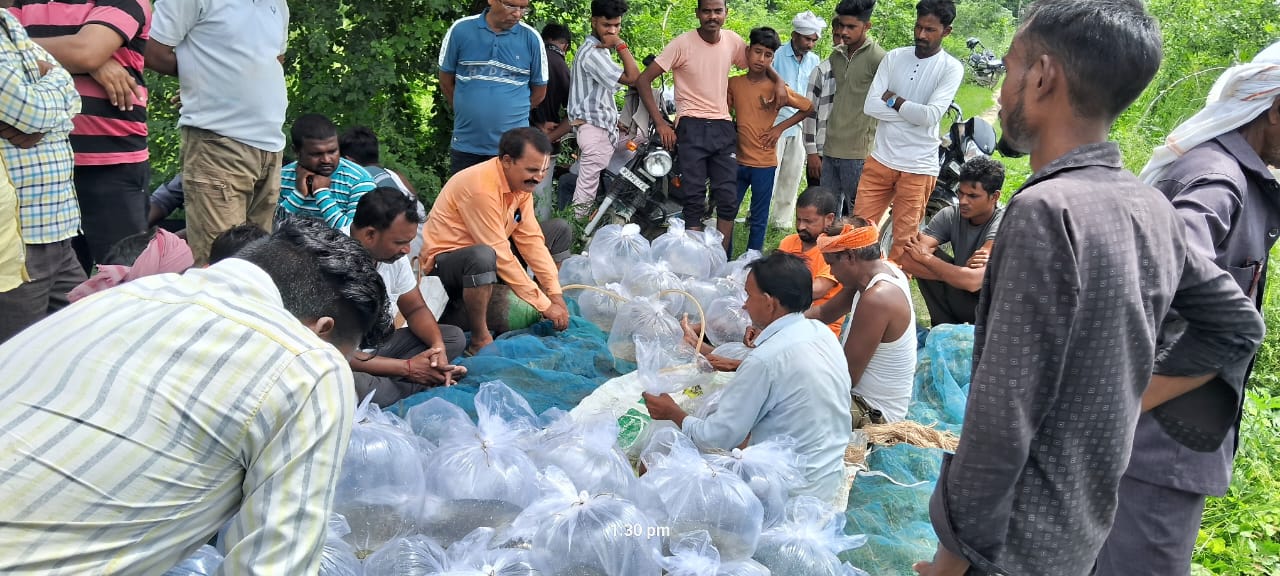 गूजरताल पर शुरु हुआ मत्स्य बीज वितरण, पहले दिन चार लाख रुपये की बिक्री