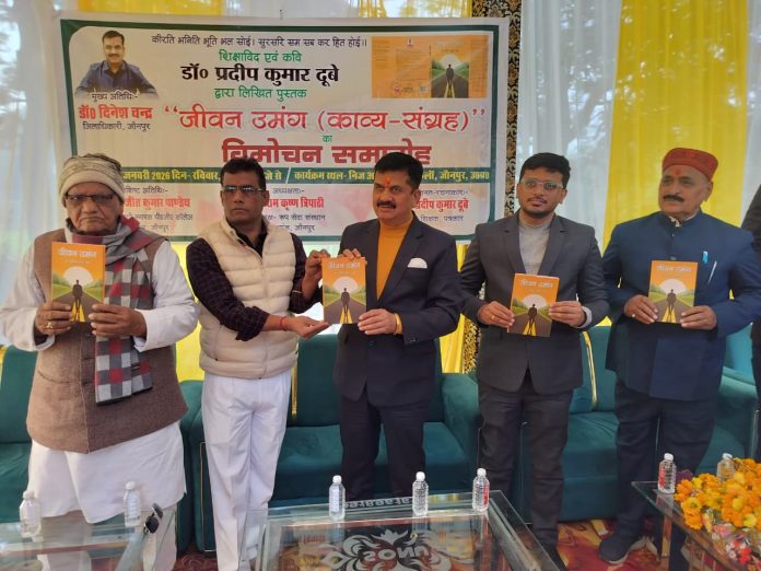 क्षेत्र के सुइथाकला गांव में रविवार को एक निजी कार्यक्रम के दौरान डॉ. प्रदीप कुमार दूबे द्वारा रचित काव्य संग्रह “जीवन उमंग” का विमोचन जिलाधिकारी डॉ. दिनेश चन्द्र के हाथों हुआ। इस दौरान उपस्थित तमाम गणमान्य लोगों ने डॉ दूबे को बधाई दी।