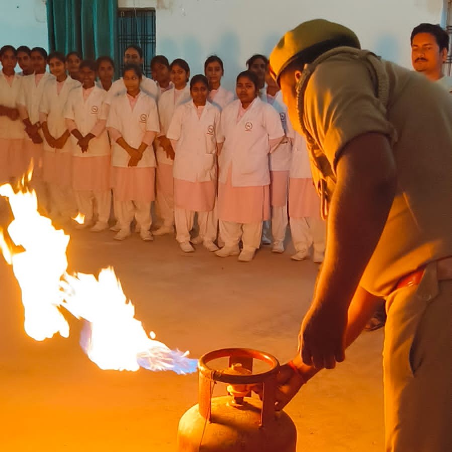 यह भी बताया कि आग लगने के बाद प्रयास करके सिलेंडर को सीधा कर लें ताकि उसके फटने की आशंका कम हो जाए।छात्राओं को गीले कंबल, बाल्टी और अन्य तरीकों से आग बुझाने की जानकारी दी गई।कार्यक्रम में संस्थान के प्रधानाचार्य जेएस कुट्टी, पूर्व अध्यक्ष सौरभ सेठ, कार्यक्रम संयोजक सक्षम मोदनवाल, आदित्य अग्रहरि, रोहित गुप्ता, आयुष अग्रहरि आदि मौजूद रहें।