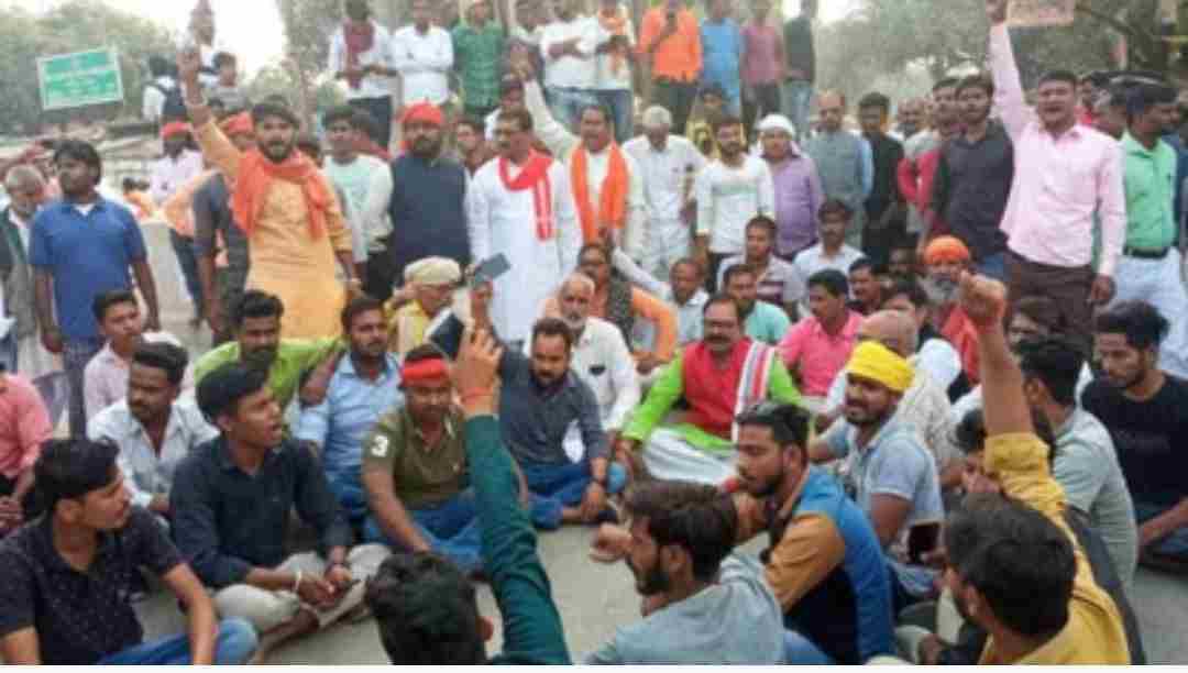 जौनपुर : आरोपितों की जल्द गिरफ्तारी को लेकर खुटहन चौराहे पर किया प्रदर्शन