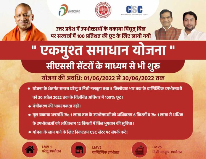 अब प्रदेश के सभी जनपदों के सम्मानित विद्युत उपभोक्ताओं की सुविधा के लिए जनपद जौनपुर में स्थित सभी सीएससी (कॉमन सर्विस सेंटर) के माध्यम से भी उत्तर प्रदेश सरकार द्वारा घरेलू उपभोक्ताओं, निजी नलकूप उपभोक्ताओं और 5 किलोवाट तक के वाणिज्यिक उपभोक्ताओं के लिए लाई गई एकमुश्त समाधान योजना में 30 अप्रैल 2022 तक के बकाये पर 100% सरचार्ज माफी की सुविधा शुरू हो चुकी है।