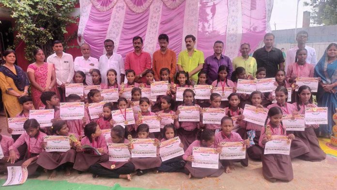 जौनपुर : कंपोजिट विद्यालय में पुरस्कार पाकर बच्चों के चेहरे खिले