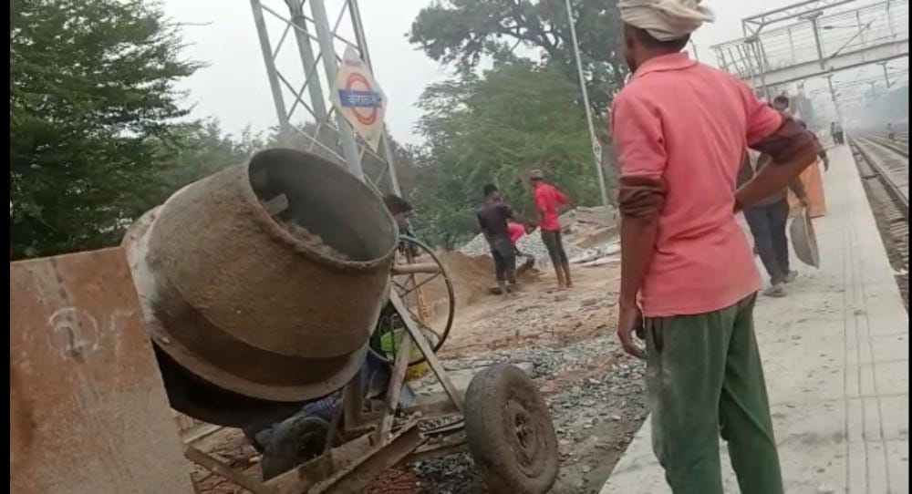 जौनपुर : केराकत रेलवे स्टेशन के फर्श निर्माण में हो रही है मानकों की अनदेखी
