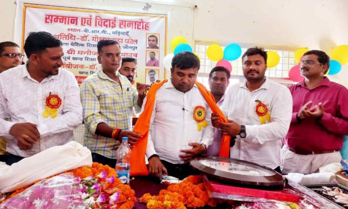 जिला बेसिक शिक्षा अधिकारी डॉ गोरख नाथ पटेल और खंड शिक्षा अधिकारी मड़ियाहूं डॉ अविनाश सिंह की उपस्थिति में मड़ियाहूं के पूर्व खंड शिक्षा अधिकारी मनोज कुमार यादव को विदाई दी गई। कुछ दिनों पहले ही मनोज कुमार यादव का स्थानांतरण अन्य जनपद के लिए हो गया है।