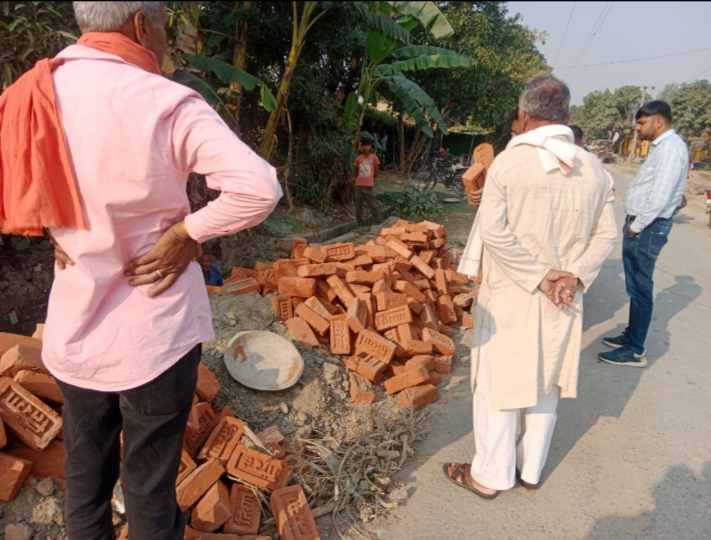 जौनपुर : घटिया सामग्री के उपयोग पर ग्रामीणो ने रूकवाया निर्माण कार्य