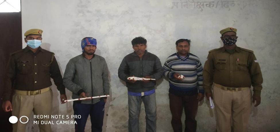 पंवारा। दीपक श्रीवास्तव तहलका 24×7 अपराध एवं अपराधियों के विरुद्ध चलाये जा रहे अभियान के क्रम में क्षेत्राधिकारी मछलीशहर के निर्देशन में पंवारा पुलिस ने मुखबिर की सूचना पर होरिल इण्टर कालेज के समीप से चोरी की योजना बनाते समय तीन अभियुक्तों दिलशाद उर्फ सफर पुत्र मो हारून उर्फ हबीब निवासी नरगहना थाना पवांरा, हैदर अली पुत्र स्व लियाकत अली निवासी बनकट थाना पवांरा एंव विजय यादव उर्फ पिंकी पुत्र स्व राज बहादुर यादव निवासी अमोध थाना पवांरा को लोहे के राड, पेचकस, पिलास, लोहे की आरी आदि के साथ गिरफ्तार किया गया। गिरफ्तारी व बरामदगी के आधार पर सुसंगत धाराओं के मुकदमा पंजीकृत कर चालान न्यायालय भेज दिया गया।