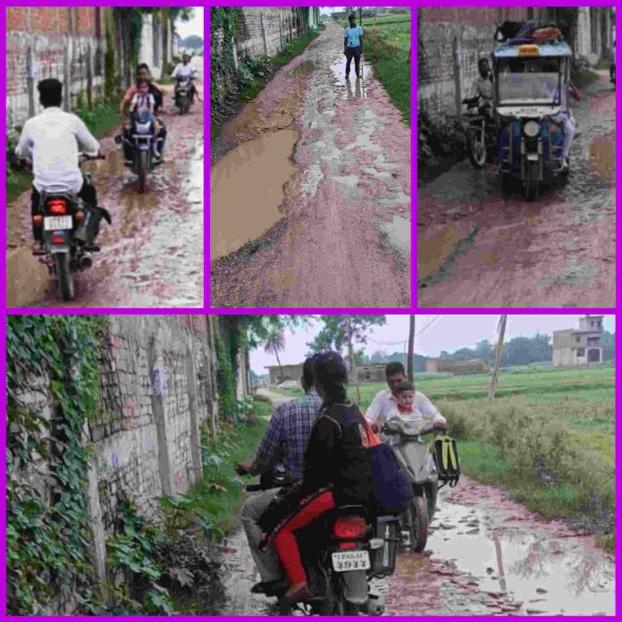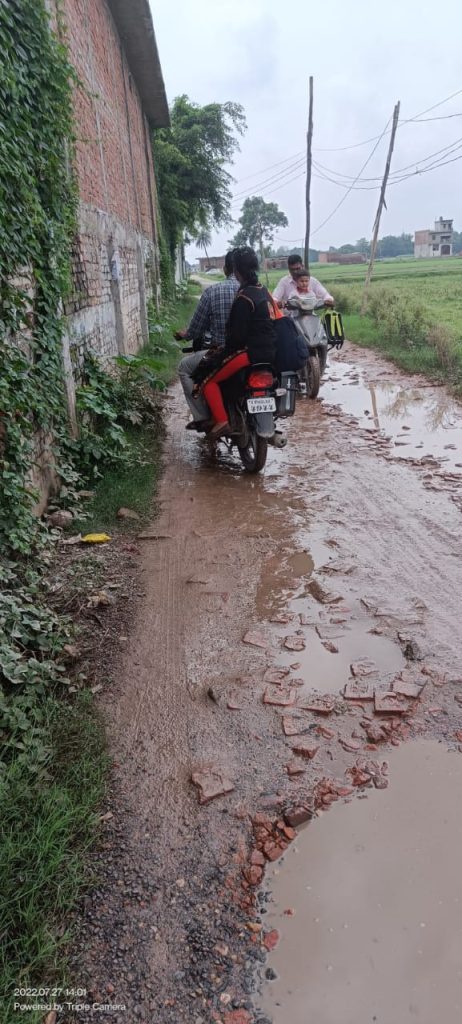जौनपुर : जर्जर मार्ग से स्कूली बच्चे व ग्रामीण गुजरने को मजबूर