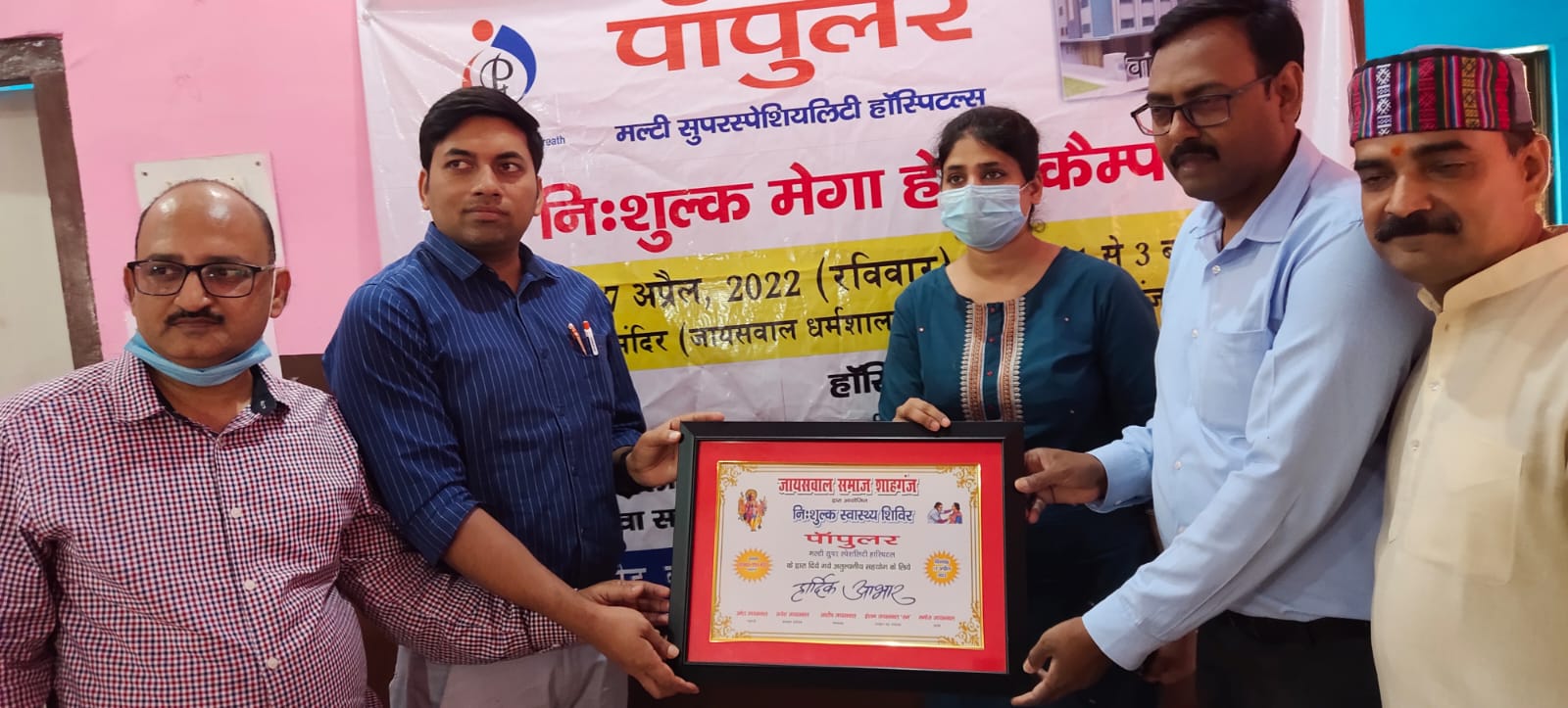 जायसवाल समाज के अध्यक्ष मनोज जायसवाल ने बताया कि बेहतर समाज बनाने के लिए लोगों का स्वास्थ्य बेहतर होना बेहद जरूरी है। उन्होंने कहा कि भीषण गर्मी में संक्रामक रोगों और अन्य स्वास्थ्य संबंधी दिक्कतों के मद्देनजर कस्बे में स्वास्थ्य परामर्श शिविर का आयोजन किया गया। जहां करीब 250 नगर वासियों ने बगैर किसी शुल्क के डॉक्टरों से सेहत संबंधी परामर्श लिया। संजीव जायसवाल ने बताया कि शिविर में पॉपुलर मल्टी स्पेशियलिटी हॉस्पिटल की तरफ से स्त्री रोग विशेषज्ञ डॉ करिश्मा, न्यूरो विशेषज्ञ डॉ कमलेश, फिजिशियन डॉ गजेंद्र और नेत्र रोग विशेषज्ञ डॉ रमन मौजूद रहे। शिविर में लोगों के डायबिटीज और रक्तचाप की जांच भी निशुल्क हुई, साथ ही दवाइयां भी मुफ्त बांटी गईं।