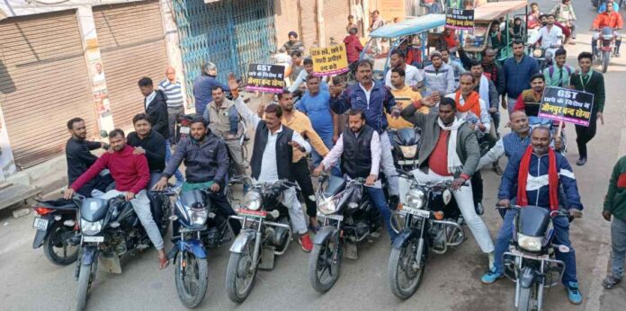 इसके पहले व्यापार मण्डल के जिलाध्यक्ष श्रवण जायसवाल के नेतृत्व में समस्त पदाधिकारियों व कार्यकर्ताओं ने बाइक जुलूस निकालकर जीएसटी विभाग के खिलाफ नारेबाजी किया। साथ ही सभी दुकानदारों से अपने प्रतिष्ठानों को बन्द रखकर जीएसटी विभाग की अत्याचार नीतियों के खिलाफ प्रदर्शन किया। श्री जायसवाल के नेतृत्व में तमाम व्यापारियों ने अपनी प्रतिष्ठानों को स्वयं बन्द रखकर छिटपुट खुले दुकानों को बन्द रखने की अपील किया जिसका सभी व्यापारियों ने समर्थन भी किया। जौनपुर जंक्शन रेलवे स्टेशन से लेकर पूरे नगर का भ्रमण करते हुये सैकड़ों व्यापारी जगह-जगह एकत्रित होकर जीएसटी विभाग के खिलाफ नारेबाजी किये।