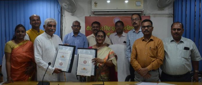 वीर बहादुर सिंह पूर्वांचल विश्वविद्यालय जौनपुर और श्री रूरल डेवलपमेंट प्रोग्राम ट्रस्ट (एसएसआरडीपी) बंगलुरू के बीच सोमवार को कुलपति सभागार में एक एमओयू पर हस्ताक्षर किया गया। यह एमओयू पूर्वांचल विश्वविद्यालय की कुलपति प्रो. निर्मला एस. मौर्य और एसएसआरडीपी के चेयरमैन आरएल मेरानी ने किया।