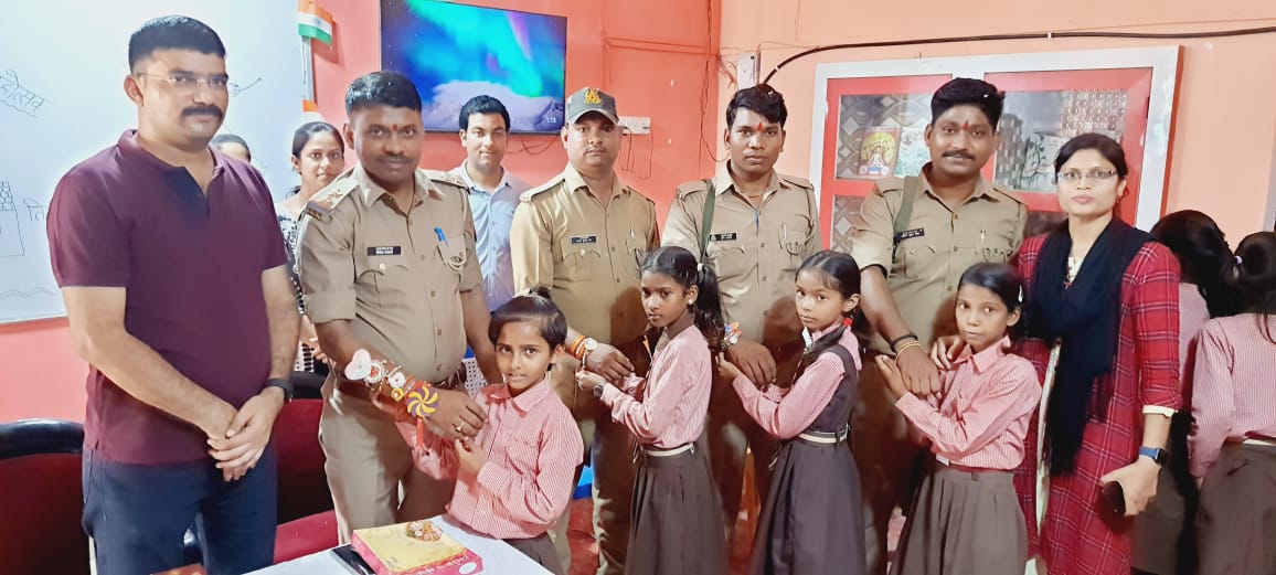 स्कूल की छात्राओं ने सुबह विद्यालय के प्रधानाध्यापक व प्राथमिक शिक्षक संघ के जिलाध्यक्ष अमित सिंह से पुलिस कर्मियों की कलाई पर राखी बांधने की मंशा जताई। प्रधानाध्यापक ने थानाध्यक्ष विवेक कुमार तिवारी से बातचीत कर बताया कि स्कूल की छात्राएं आपको और थाने के अन्य कर्मियों को राखी बाँधाना चाहती है तो उन्होंने थाना पर आवश्यक कार्यो का समाधान करने के बाद आधा दर्जन पुलिस कर्मियों के साथ स्कूल पर पहुंचकर राखी बंधवाया। छात्राओं ने सबसे पहले थानाध्यक्ष के आरती उतारकर राखी बांधा। फिर तिलक लगाकर आशिर्वाद लिया। छात्राओं ने अन्य पुलिस कर्मियों को भी राखी बांधी। थानाध्यक्ष ने अपने सम्बोधन में कहा कि आप निडर होकर पढ़ाई करे। किसी भी विपरीत परिस्थिति में पुलिस का सहयोग ले।