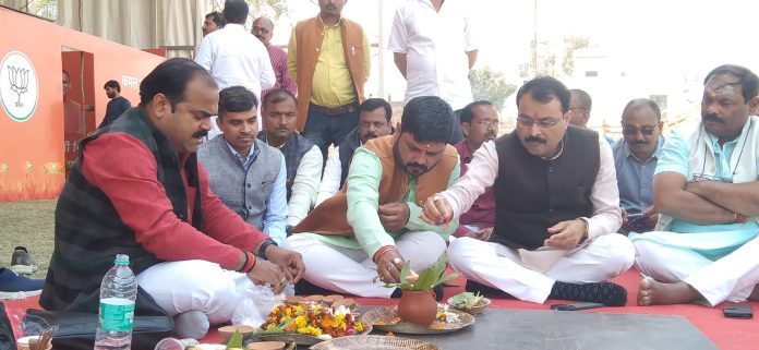 जौनपुर : प्रधानमंत्री के आगमन से पूर्व भाजपाइयों ने किया भूमि पूजन
