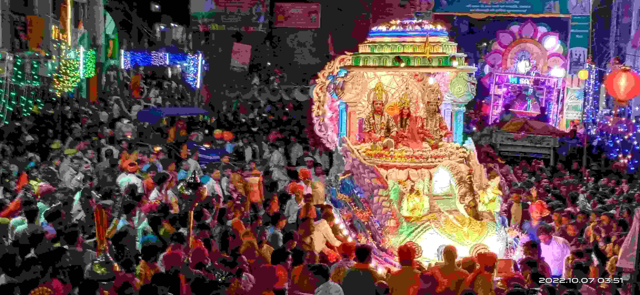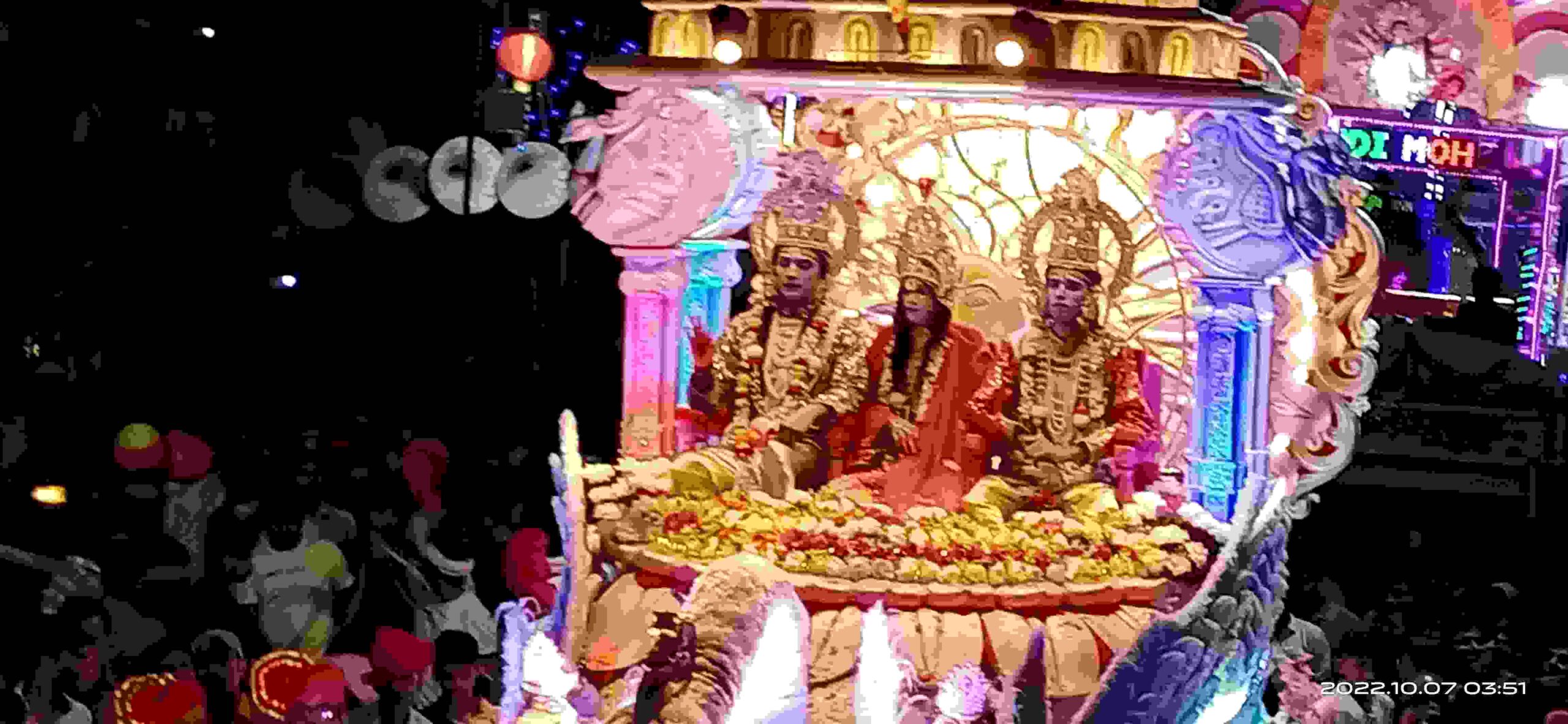 मर्यादा पुरुषोत्तम भगवान श्रीराम का पुष्पक विमान रूपी रथ शाहपंजा मोहल्ला स्थित संगत जी मंदिर से रात दो बजे निकला। जो अयोध्या रूपी नगर के अपने निर्धारित मार्गों से होता हुआ डाकखाना तिराहे पर पहुंचा जहां भगवान श्रीराम, मां जानकी और भाई लक्ष्मण के दीदार को श्रद्धालुओं का हुजूम उमड़ पड़ा।