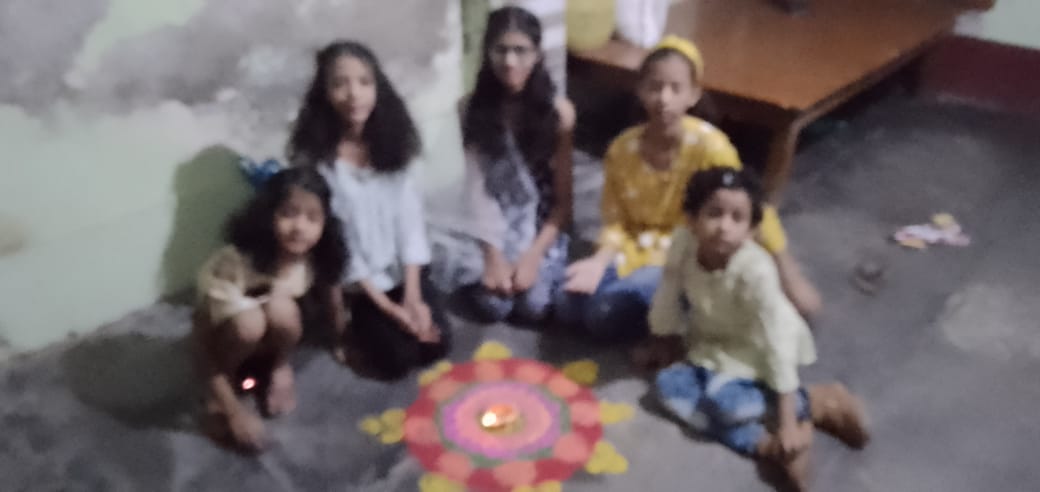 पुरानी बाजार निवासी अनन्या अग्रहरी, काव्या अग्रहरी, वैष्णवी अग्रहरी, श्रेया अग्रहरी, कनक अग्रहरी और विनायक अग्रहरी ने मिलकर रंगबिरंगी रंगोली तैयार की। सभी बच्चों ने अभिभावकों के साथ दीपावली मनाई और पटाखे फुलझडियां भी जलाई।