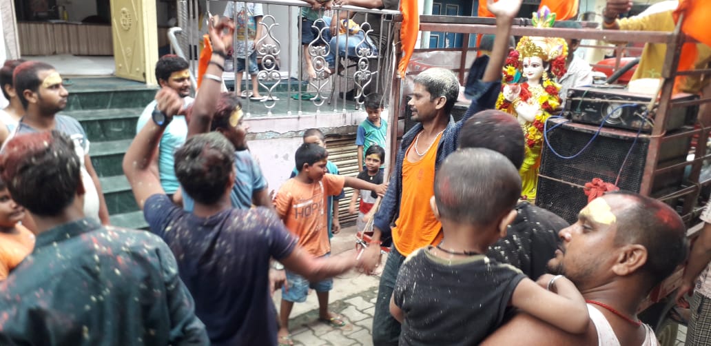 # डीजे की धुन पर नाचते गाते भक्तों ने मूर्ति का कराया भ्रमण