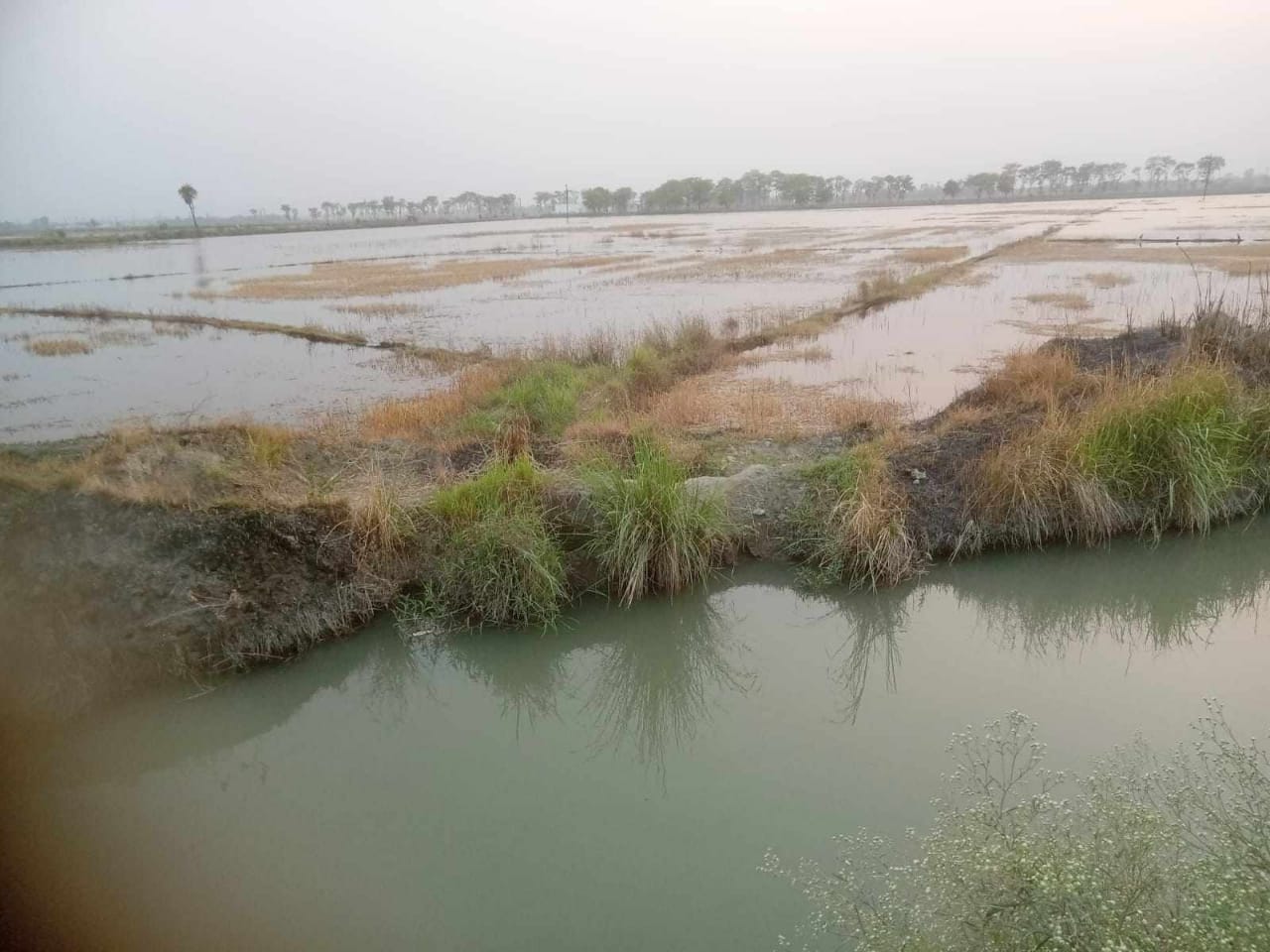 शारदा सहायक खण्ड 36 से निकला माइनर सोंगर के आगे एक छोटी नदी में मिल जाता है। इन दिनों नहर में अवाध गति से पानी छोड़ा गया है। चार दिन पहले मानीकलां में रेलवे लाइन के पूरब माइनर कट गई। जिससे माइनर का पूरा पानी आगे जाने के बजाय खेतों में जाने लगा। लगातार पानी के बहाव से सैकड़ों एकड़ खेत पानी से लबालब भर गए। इसी में मुमताज अहमद का प्याज डूब गया है। शासन प्रशासन जलसंचयन के गांवों में तालाब खुदवा रहा है। यहां माइनर कटने के बाद जलदोहन हो रहा है। कुछ किसान खेत में ढैचा बोने तो कुछ खरीफ की फसल के लिए खेतों में गोबर की खाद डालने की तैयारी कर रहे थे। लेकिन माइनर कटने से किसानों के उम्मीदों पर पानी फिर गया।
