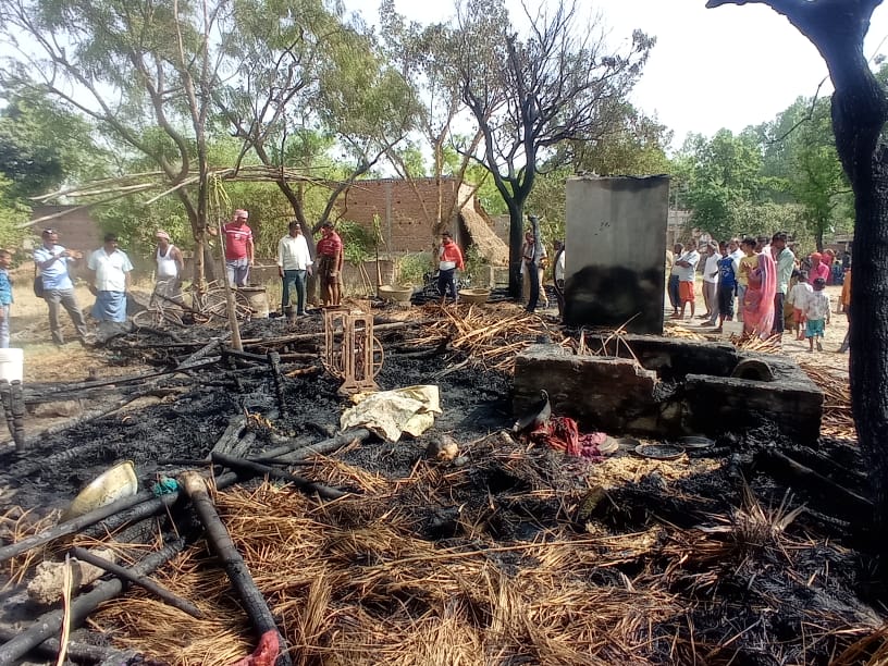 गांव निवासी श्याम प्यारे सरोज के मड़हे में सुबह अचानक आग लग गई। आग के शोले देख ग्रामीणों ने आग बुझाने की कोशिश की। तब तक आग ने राधेश्याम सरोज के मड़हे को आगोश में ले लिया। अगलगी की इस घटना में श्याम प्यारे की मोटरसाइकिल और साइकिल के अलावा 10 हजार रुपए, अनाज, बिस्तर आदि सामान जल गए। राधेश्याम की दो बकरियां जल कर मर गई। इनका नौ हजार रुपए समेत अनाज और बिस्तर आदि आग के हवाले चला गया। आग बुझाने का प्रयास कर रही इनकी पत्नी संतरा देवी झुलस गई। उसे एक निजी अस्पताल में भर्ती कराया गया। सूचना पर पहुंचे लेखपाल ने जांच पड़ताल की।