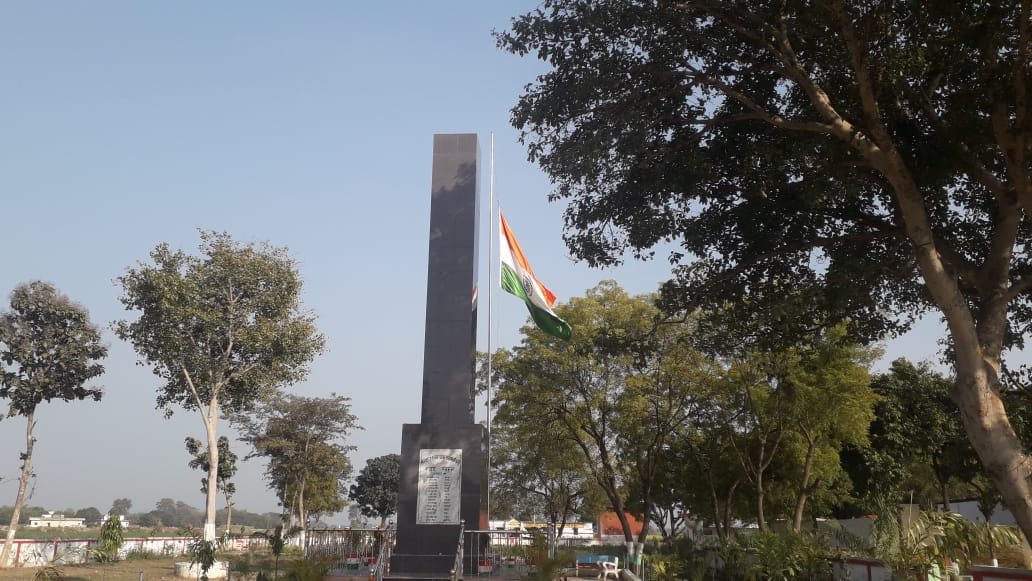 जौनपुर : राष्ट्रीय शोक में सेनापुर शहीद स्तम्भ के राष्ट्रीय ध्वज को झुकाया गया आधा