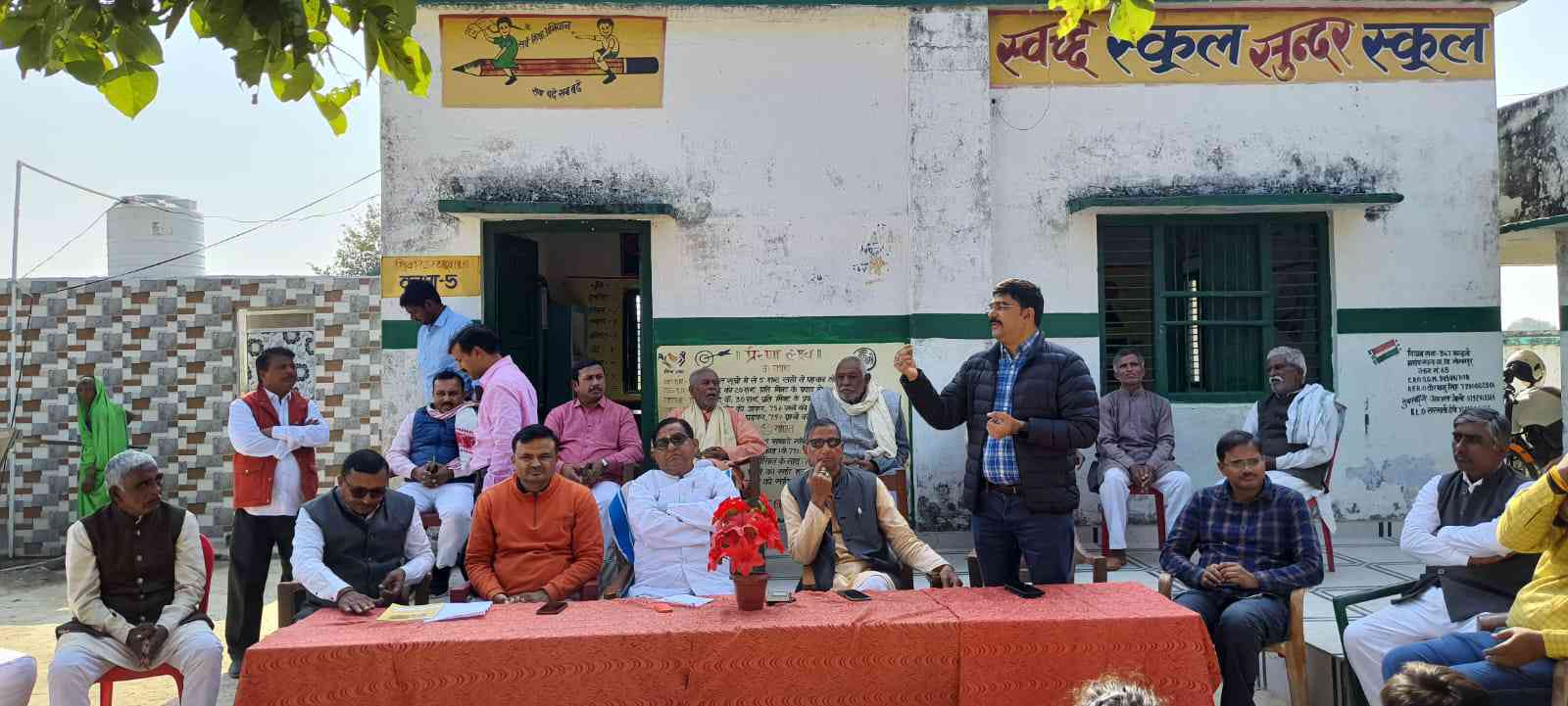 दूसरे विशिष्ट अतिथि प्राथमिक शिक्षक संघ के जिलाध्यक्ष डॉ अमित कुमार सिंह ने कहा कि समुदाय ही वह शक्ति है जो किसी भी शिक्षण संस्थान कि गति विधियों पर नजर रखते हुए उसमें सुधार लाने का सद्प्रयास कर सकता है। यह विद्यालय जल्द ही स्मार्ट क्लास व सीसी टीवी कैमरे से आच्छादित होगा। प्रारम्भ में शिक्षक श्रीप्रकाश मिश्र ने अभ्यागतों का माल्यार्पण कर स्वागत किया। दान वीर दींन दयाल तिवारी व नीरज तिवारी ने बच्चो संग अपने संस्मरण बाँटे।