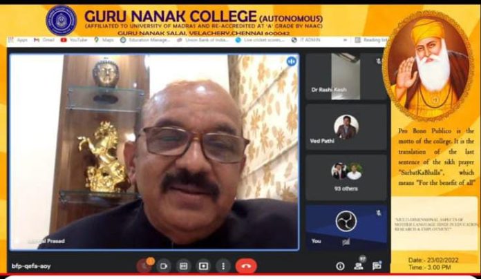 वीर बहादुर सिंह पूर्वांचल विश्वविद्यालय जौनपुर एवं गुरु नानक कॉलेज स्वायत्तशासी चेन्नई के संयुक्त तत्वावधान में बुधवार को सात दिवसीय ऑनलाइन अंतरराष्ट्रीय कार्यशाला का आयोजन किया गया। कार्यशाला के तीसरे दिन तृतीय तकनीकी सत्र में कानून के क्षेत्र में शिक्षण, शोध एवं रोजगार सृजन में मातृभाषा की उपादेयता विषय पर भूतपूर्व न्यायाधीश उत्तर प्रदेश न्यायिक सेवा मंगल प्रसाद ने कहा कि हिन्दी भाषा के कई शब्द बहुत क्लिष्ट है जैसे रेलवे को लौहपथगामिनी कहना कठिन है ऐसे में हम रेलवे को ही स्वीकार कर लेते हैं।