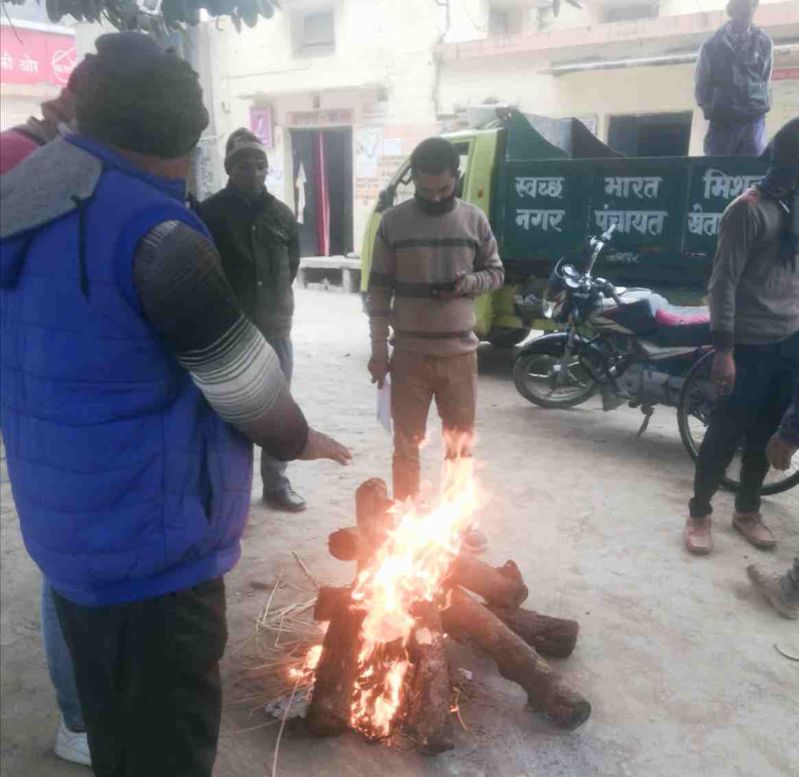 जौनपुर : शीतलहर शुरू होते ही नगर पंचायत में अनेक जगह जला अलाव