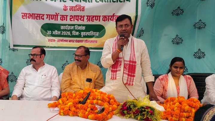उन्होंने कार्यक्रम के दौरान नवनियुक्त सभासदों को बधाई देते हुए आशा व्यक्त की कि वे नगर के विकास कार्यों में सक्रिय भूमिका निभाएंगे और जनता की अपेक्षाओं पर खरा उतरेंगे।शपथ ग्रहण के बाद सभासदों ने नगर के समग्र विकास,स्वच्छता व्यवस्था,पेयजल सुविधा एवं जनहित से जुड़े मुद्दों को प्राथमिकता देने का संकल्प व्यक्त किया।उन्होंने कहा कि वे क्षेत्र की समस्याओं के समाधान के लिए पूरी निष्ठा एवं जिम्मेदारी के साथ कार्य करेंगे।