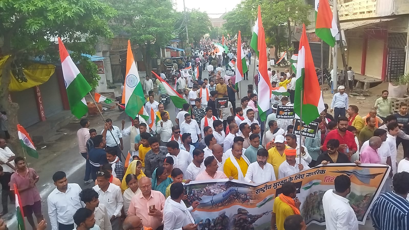 # भारत माता के जयकारे के लगे गगनभेदी नारे, सौ मीटर का ध्वज रहा गर्व का विषय