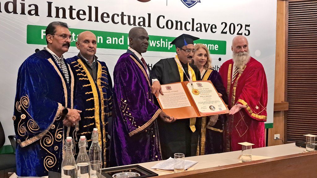 गौरतलब हो कि इटली के प्रख्यात विश्वविद्यालय, यूनिवर्सिटी ऑफ सीयूएनइओ द्वारा भारत में जमैका दूतावास के हाई कमीशन जॉशन हॉल ऑस्ट्रेलियाई पत्रकार और यूनिवर्सिटी के प्रतिनिधि डॉ. विक गैफनी, रशियन दूतावास की अधिकारी एलिना बर्मन, श्रीलंका दूतावास के मंत्री काउंसलर लक्ष्मेंद्र गेशन व नाइजीरियन दूतावास के कंसलटिंग डायरेक्टर कांगूना फिलिप के हाथों उक्त उपाधि श्री त्रिपाठी को दी गई। इस दौरान रिटायर्ड लेफ्टिनेंट कर्नल और नागालैंड के पूर्व मंत्री डोसे सेमा, केंद्रीय उप सचिव गृह सीबी तिवारी, डॉ. पीके राजपूत कैडिला ग्रुप के वाइस चेयरमैन, ऑक्सफोर्ड ग्रुप के निदेशक डॉ. पुनीत द्विवेदी व डॉ. नेहा शर्मा समेत अनेक हस्तियां मौजूद रहीं।
