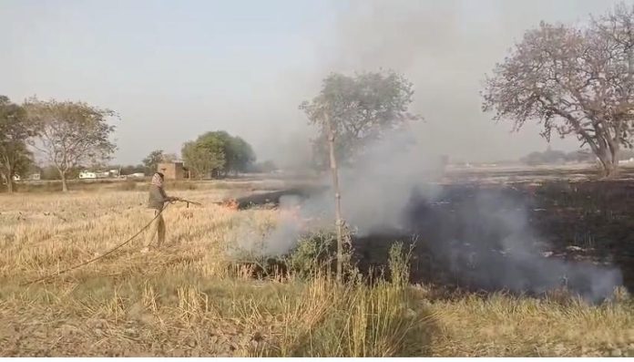 पराली जलाने से भड़की आग,11 बीघा में फैली,फसल हुई राख