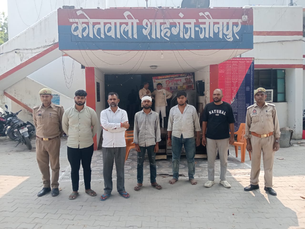 गिरफ्तार अभियुक्तों में विशाल मिश्र पुत्र जयप्रकाश मिश्र निवासी सोदमापुर थाना पवई आजमगढ़, शुभम पाण्डेय पुत्र विश्वनाथ पाण्डेय निवासी भटचकिया थाना पवई आजमगढ़, आदर्श यादव पुत्र नरसिंह यादव निवासी सुल्तानपुर थाना पवई आजमगढ़, अर्पित गौड़ पुत्र अरुण कुमार व अरुण कुमार गौड़ पुत्र रामचन्द्र गौड़ निवासी अरगूपुर कला थाना शाहगंज हैं।गिरफ्तारी टीम में प्रभारी निरीक्षक केके सिंह, उप निरीक्षक नागेश्वर शुक्ला मय पुलिस बल शामिल रहे।