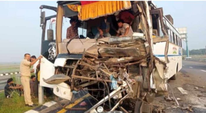 पूर्वांचल एक्सप्रेस-वे पर ट्रक से टकराई बेकाबू बस, 16 यात्री घायल