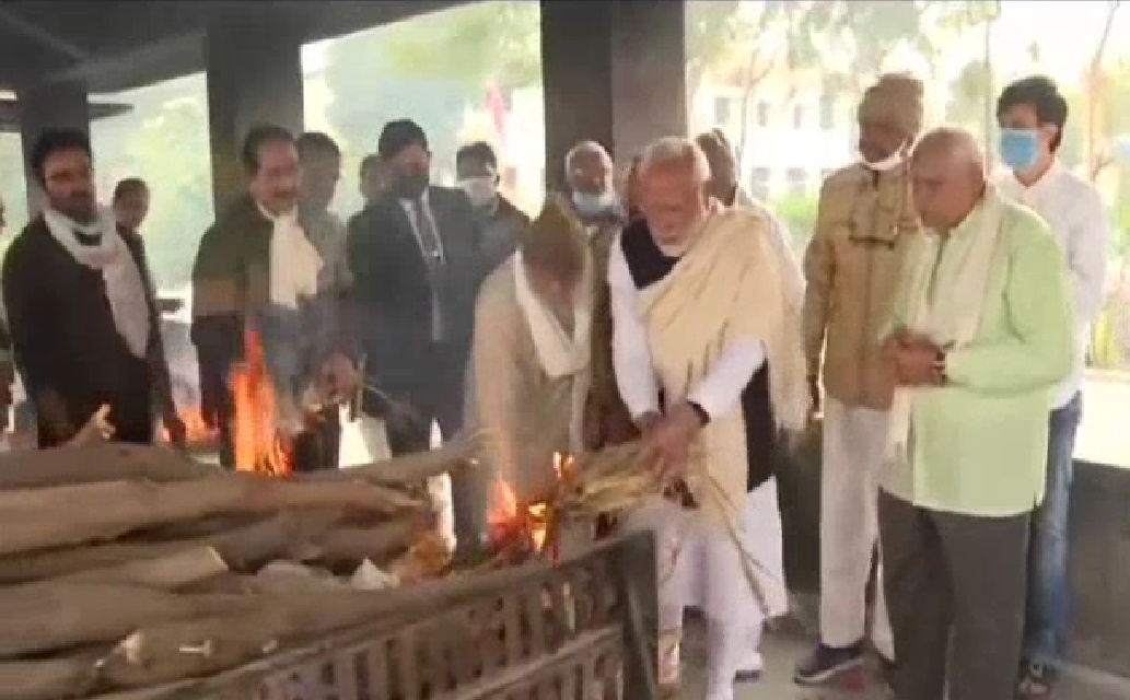 # सादगी के साथ गांधीनगर में हुआ अंतिम संस्कार, मोदी ने भाइयों के साथ दी मुखाग्नि