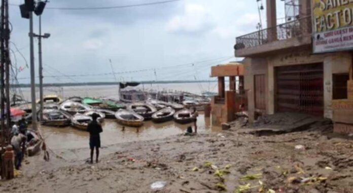 बनारस में घाटों से नीचे उतरने लगी गंगा, कीचड़ और दुर्गंध से बढ़ी दुश्वारियां