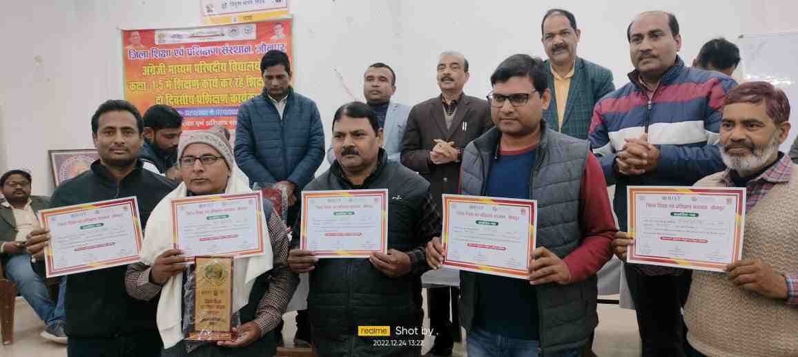 तहलका 24×7 विकासखण्ड करंजाकला को निपुण एसेसमेंट परीक्षा में उत्कृष्ट कार्य सम्पादन के लिए खंड शिक्षा अधिकारी करंजाकला श्रवण कुमार यादव, एआरपी संदीप चौधरी, जगदीश यादव, अच्छेलाल चौधरी, सतीश चंद्र मौर्या, डॉ मनोज सिंह को डायट जौनपुर की तरफ से साल, मोमेंटो व प्रशस्ति पत्र देकर सम्मानित किया गया। कार्यक्रम में डाइट प्राचार्य डॉ सचिदानंद यादव, बीएसए डॉ गोरखनाथ पटेल,वरिष्ठ प्रवक्ता राकेश सिंह, रविन्द्र नाथ यादव, समस्त एसआरजी, डायट मेंटर, एआरपी उपस्थित रहे।