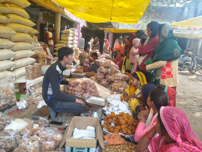 मकर संक्रांति के पावन पर्व को लेकर खेतासराय कस्बा समेत आस-पास की बाजारों में जबरदस्त उत्साह और चहल-पहल देखने को मिला। पर्व के मद्देनज़र कस्बा के मछली मार्किट, गोलाबाजार, खुटहन मार्ग, दीदारगंज मार्ग सहित कस्बे की गलियों में सजी अस्थायी दुकानों पर खरीदारों की भारी भीड़ उमड़ पड़ी। खासकर लाई, तिलकुट, गट्टा, गुड़, तिल, मूंगफली और बच्चों के पसंदीदा ढूंढे की खरीदारी के मेला लगा हुआ है।