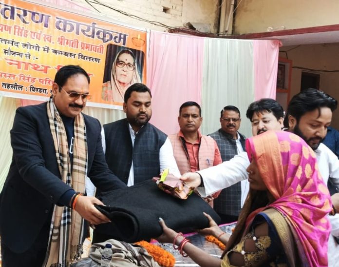 माता पिता की स्मृति पर हुआ कम्बल वितरण