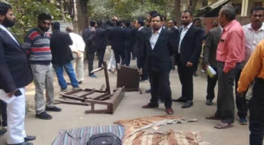 वाराणसी: कचहरी में कुर्सी, मेज टूटने से आक्रोशित अधिवक्ताओं ने किया प्रदर्शन