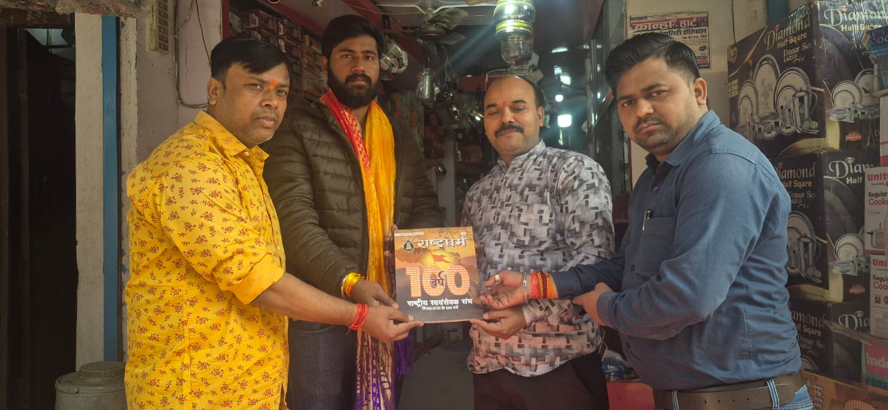 टीम ने व्यापारियों से संघ की कार्यशैली, कार्यप्रणाली, राष्ट्रनिर्माण में योगदान और शताब्दी संकल्प पर विस्तार से चर्चा की। कार्यक्रम का उद्देश्य लोगों को राष्ट्रीय स्वयंसेवक संघ के 100 वर्ष के सफर, राष्ट्रवादी विचार तथा समाजसेवा से जुड़े कार्यों से अवगत कराना था।