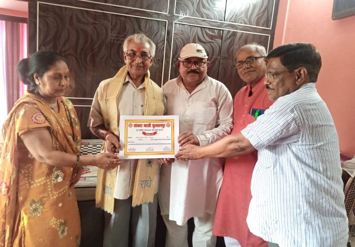 # गुरु पूर्णिमा सप्ताह पर वरिष्ठ साहित्यकार के आवास पहुंच कर दिया सम्मान