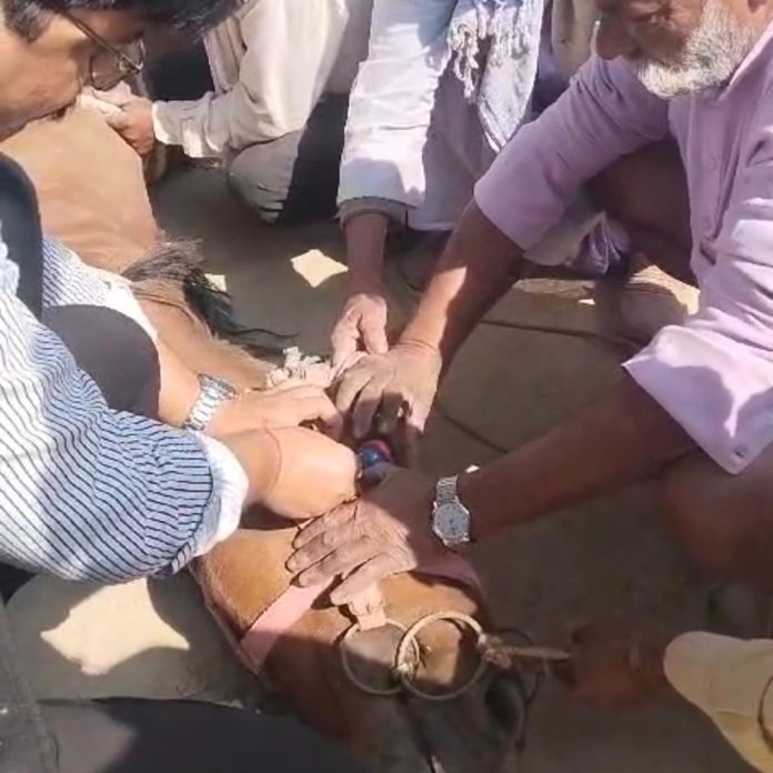 सेटेरिया कृमि निकाल चिकित्सक ने घोड़े को दी आंख की रोशनी