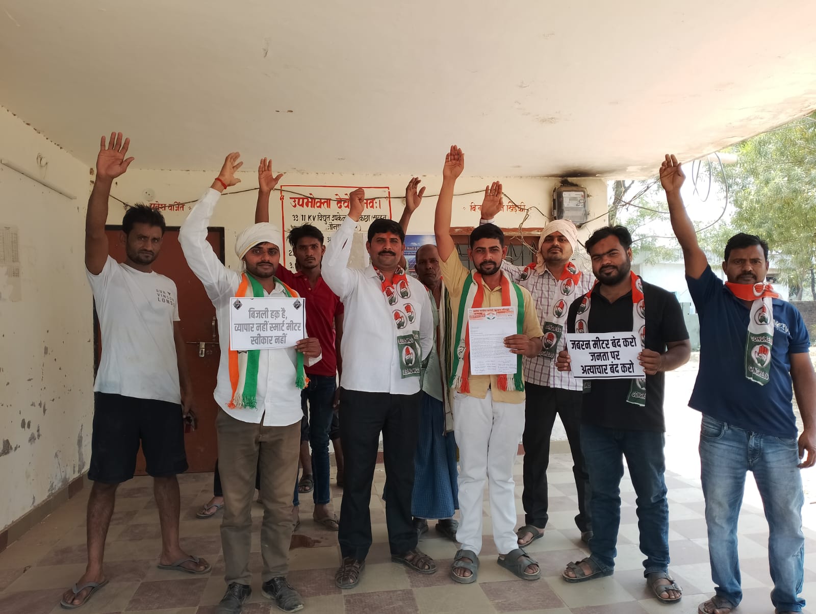स्मार्ट मीटर व बिजली कटौती के खिलाफ कांग्रेसियों ने किया उपकेंद्र का घेराव